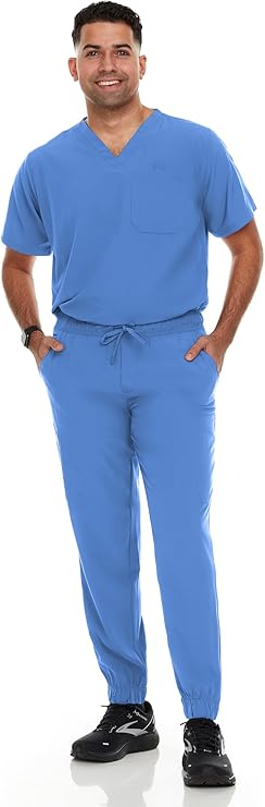 Medichic Mens Stretch Set V-Neck Top Jogger Pants Scrub Set