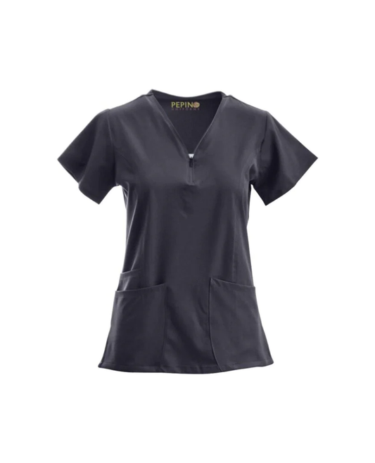 Pepino Uniforms Round Zipper V-Neck Scrub Top