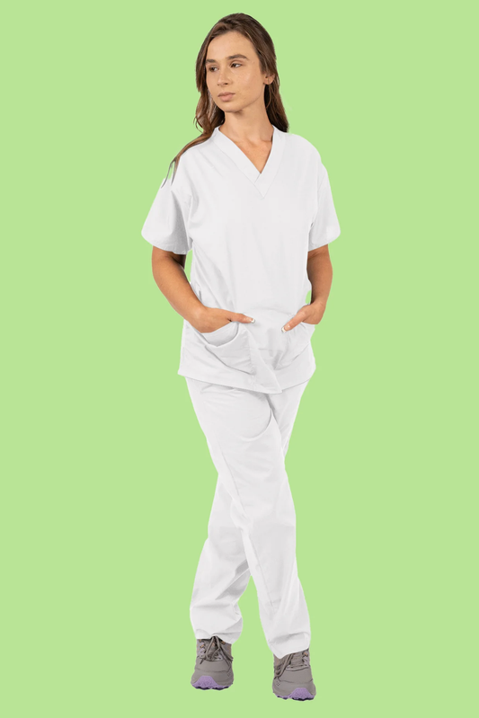 Sweet Doll Unisex Nurses V-Neck Scrub Top & Elastic Waist Pants Set