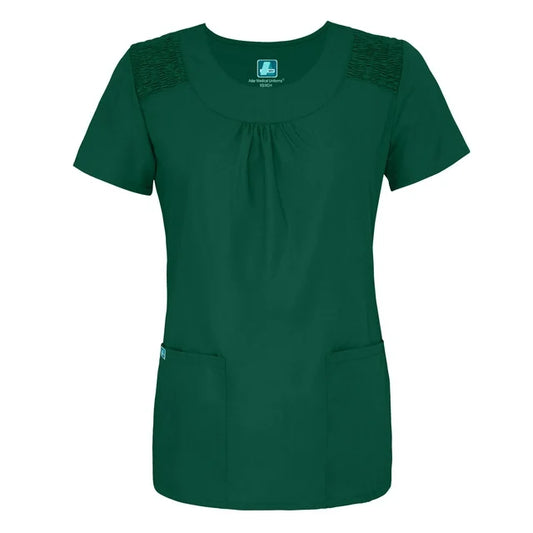 Adar Indulgence Scoop Neck Pleated Scrub Top