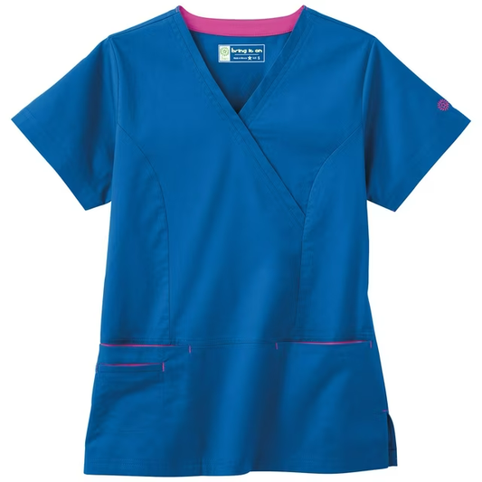 Bio Stretch Banded Mock Wrap Scrub Top