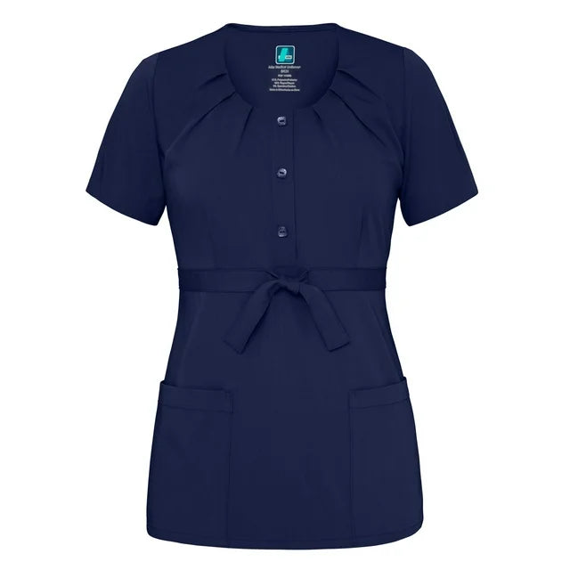 Adar Indulgence Scoop Neck Pleated Scrub Top